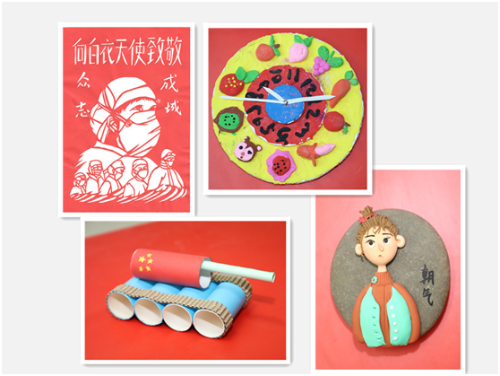 此次征集活動(dòng)共收到作品91件,其中不僅有硬筆、毛筆、蠟筆、水粉畫、景物素描等書繪類創(chuàng)作,還有色彩斑斕的手工作品。孩子們用手工展現(xiàn)童心世界,用畫筆贊美抗擊新冠肺炎疫情的英雄,用丹青書寫中華文化。作品表現(xiàn)力強(qiáng),充滿奇思妙想,全面展示出孩子們豐富的想象力和動(dòng)手能力,表現(xiàn)出新時(shí)代少年兒童的別樣風(fēng)采。