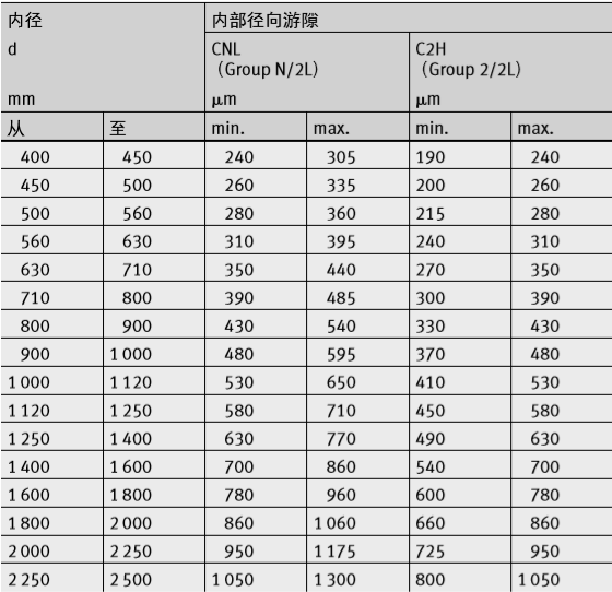 圖3 大型風電調(diào)心滾子軸承游隙建議表