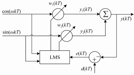 文獻[26]提出了一種基于頻域自適應(yīng)的LMS算法,單一通道不平衡振動自適應(yīng)控制框圖如圖14所示,其以諧波振動作為輸入,參考輸入為引入的與傳感器跳動具有相同分量的正弦信號,仿真結(jié)果表明該方法能有效提取磁懸浮轉(zhuǎn)子不平衡同頻振動信號。
