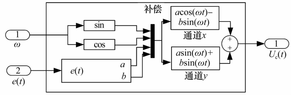 文獻[37]提出了一種尋找不平衡質(zhì)量位置的算法,通過如圖13所示的補償模塊將轉(zhuǎn)子轉(zhuǎn)速作為輸入,根據(jù)實時提取的轉(zhuǎn)子不平衡質(zhì)量的大小和位置產(chǎn)生相應(yīng)的控制信號,從而抑制不平衡振動。由于該不平衡質(zhì)量與轉(zhuǎn)子轉(zhuǎn)速無關(guān),該算法也適用于變速轉(zhuǎn)子。