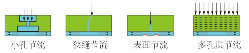 小孔節(jié)流氣體靜壓軸承是最早提出的氣體靜壓軸承結(jié)構(gòu)。它通過設(shè)計不同氣腔來改善節(jié)流作用,通常氣膜壓力不受承載間隙變化的影響,具有較好的靜態(tài)剛度,但其穩(wěn)定性較差,且節(jié)流器加工難度大,易出現(xiàn)堵塞。